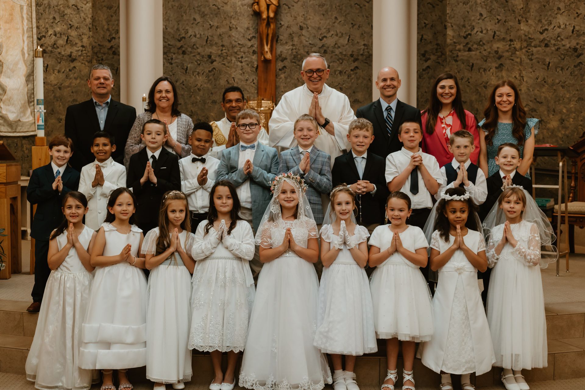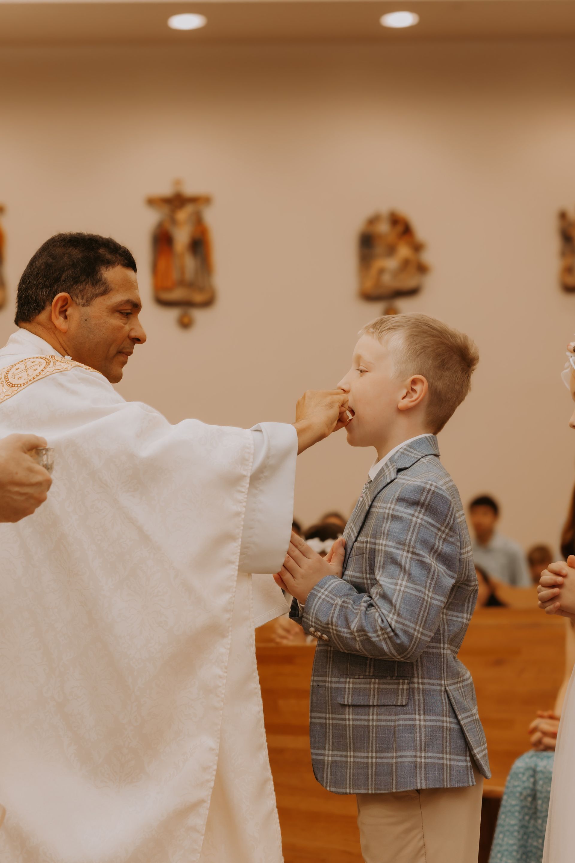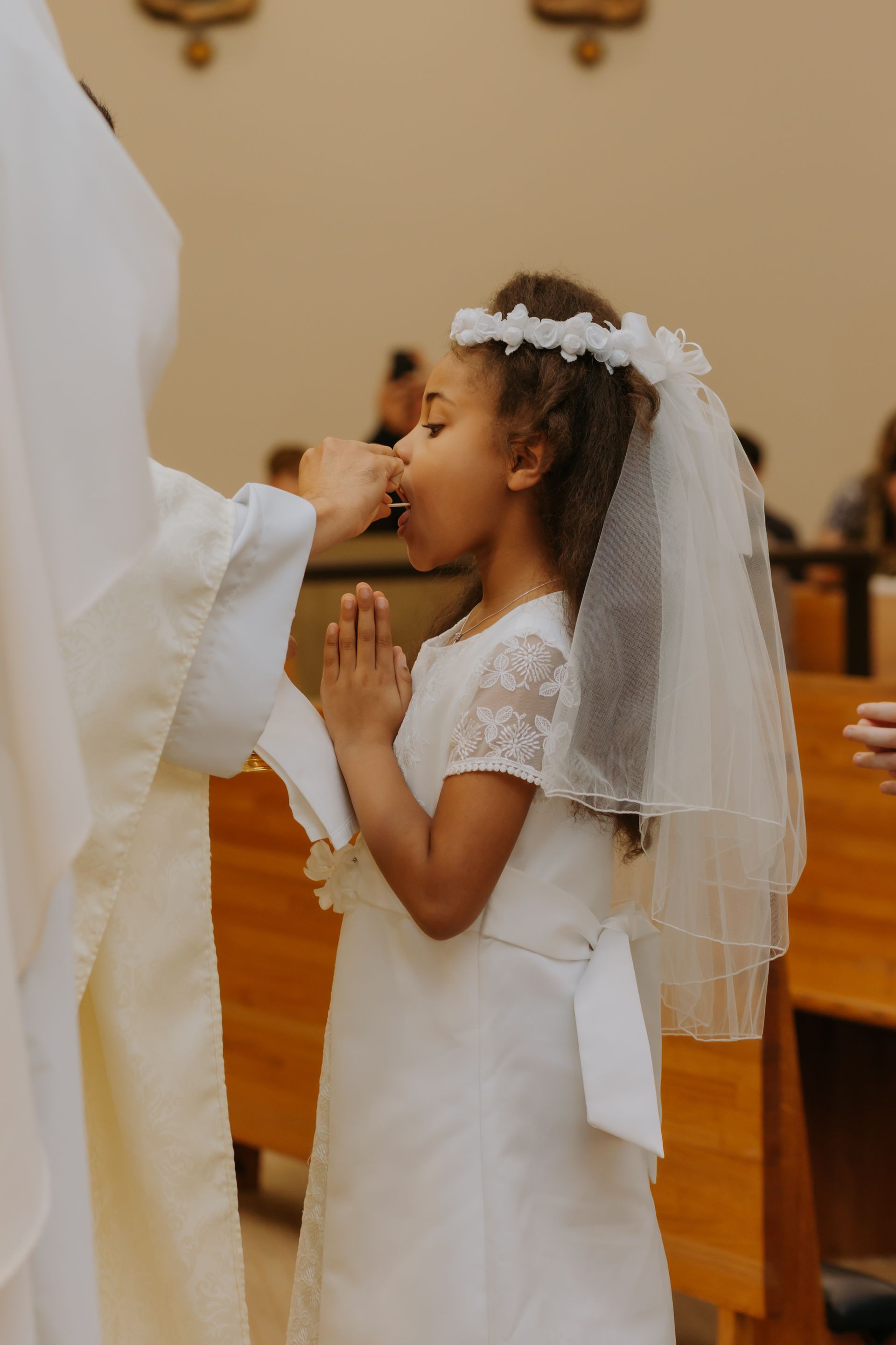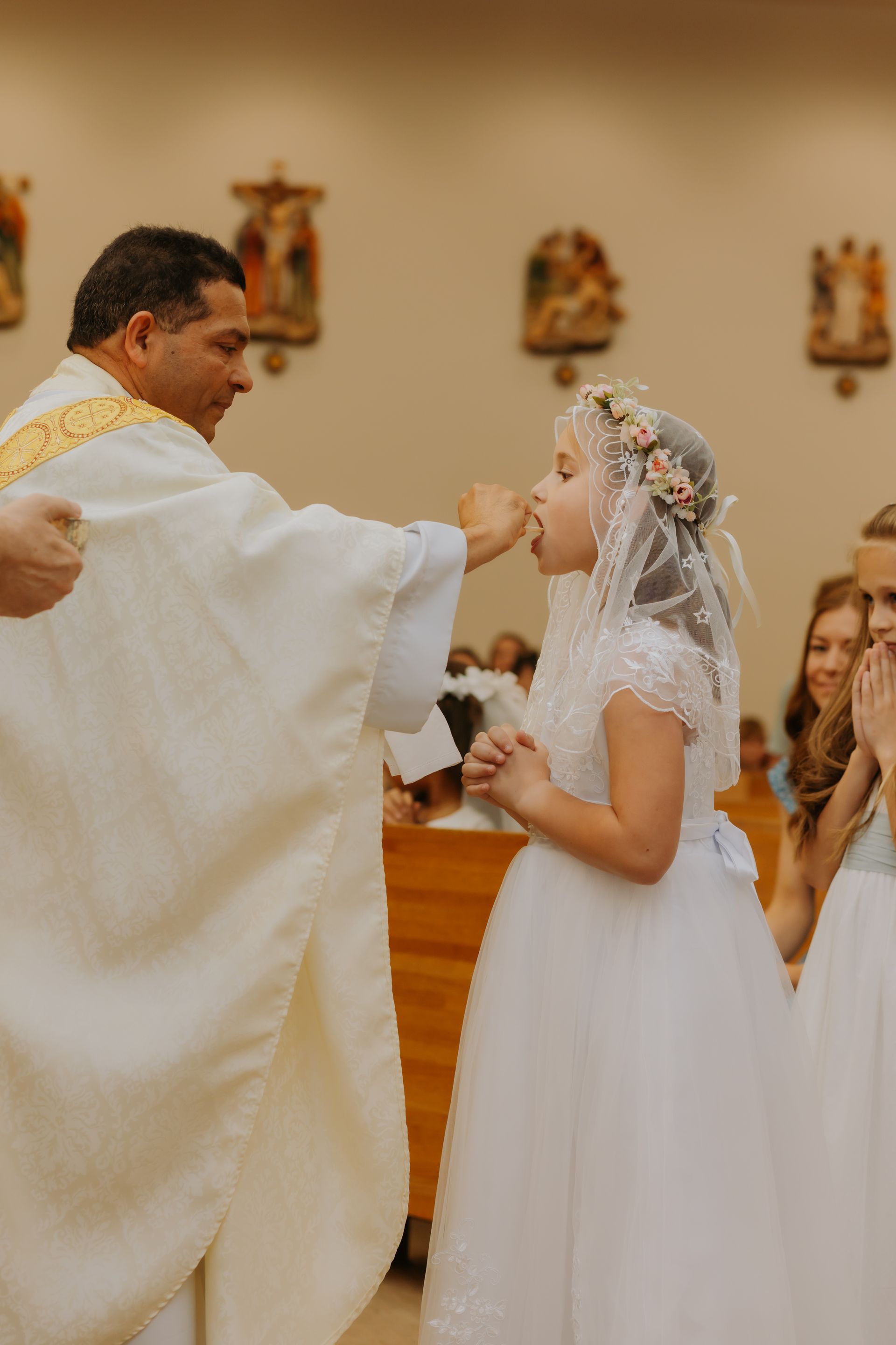 During this beautiful sacrament, children receive the Body and Blood of Christ for the very first time. It is a moment filled with excitement, reverence, and celebration as they are welcomed more fully into the life of the Church. From this day forward, they are able to participate more deeply in the Mass by receiving the Eucharist, the very heart of our Catholic faith.